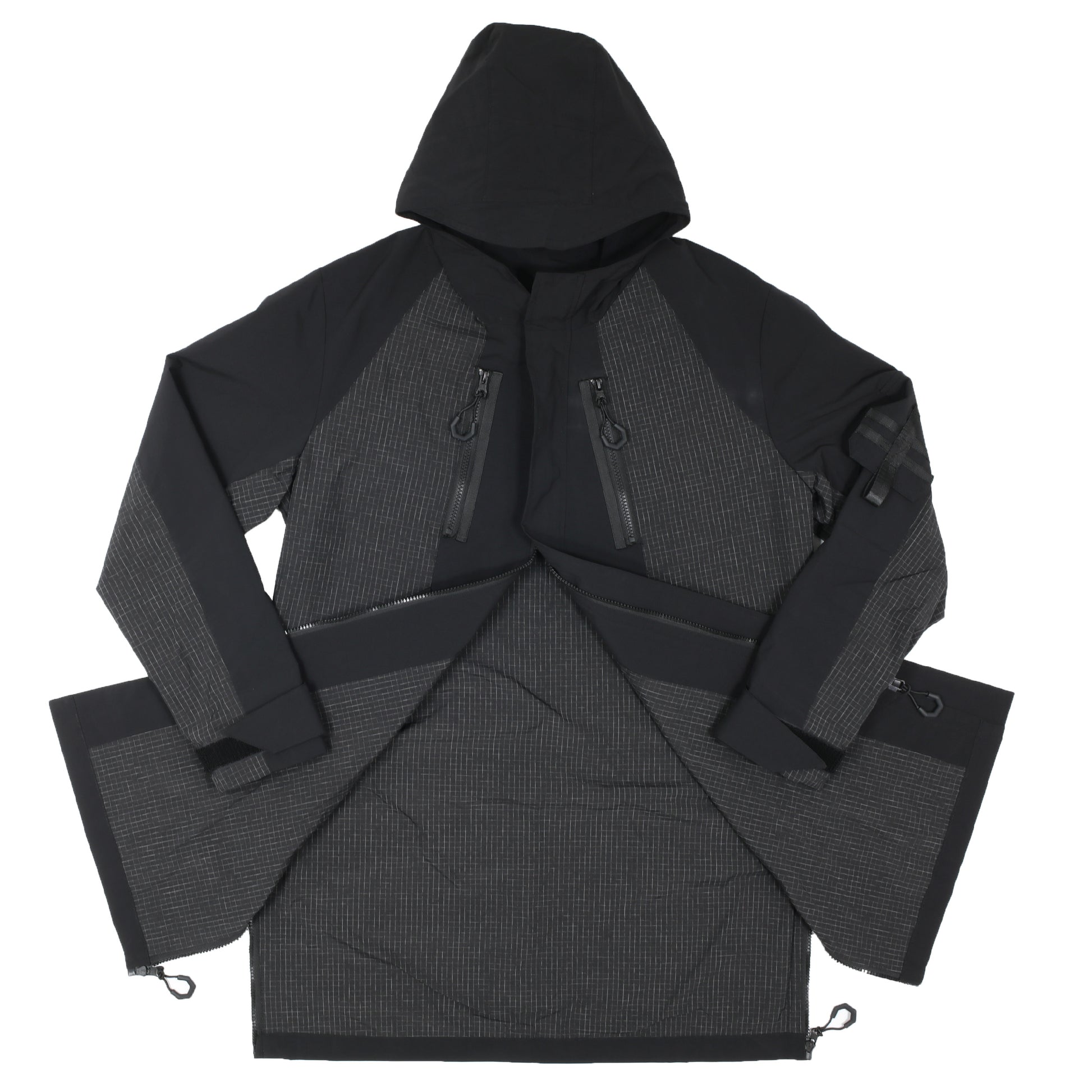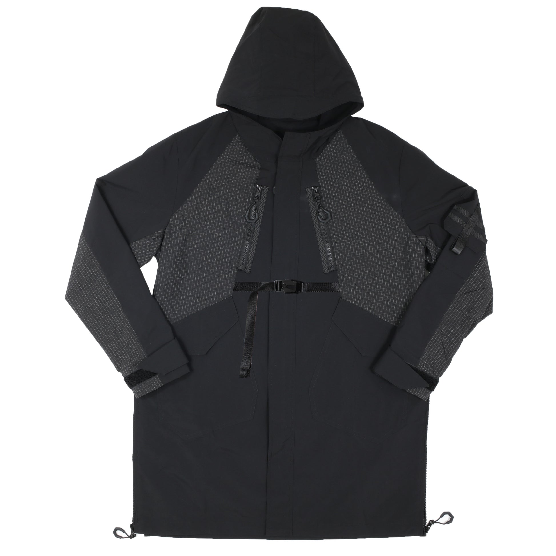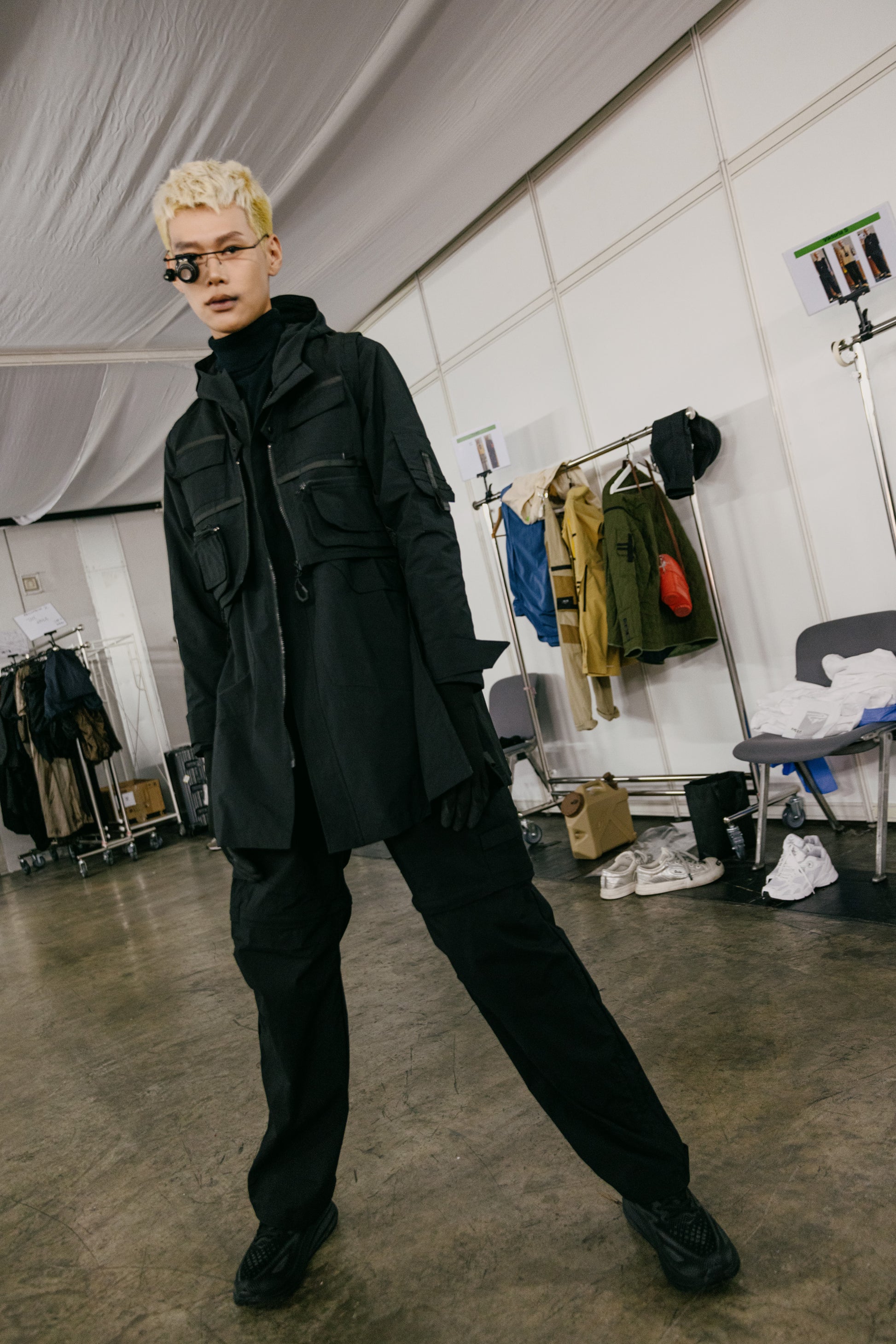 The designer defines his collections by Chapter. The brand constructs a virtual world and imagines the uniforms of different jobs in the future as inspiration to design futuristic, functional, and non-seasonal items. Continuing the previous chapter with future cleaners as the design prototype, this Chapter takes oil drilling workers as the inspiration, using 3D tailoring to simulate the muscle lines during work. The design of detachable accessories is used to provide a variety of ways of mix and match. Waterproof and water-resistant materials are used to provide the functionality of the collection and present Imagining future uniforms.