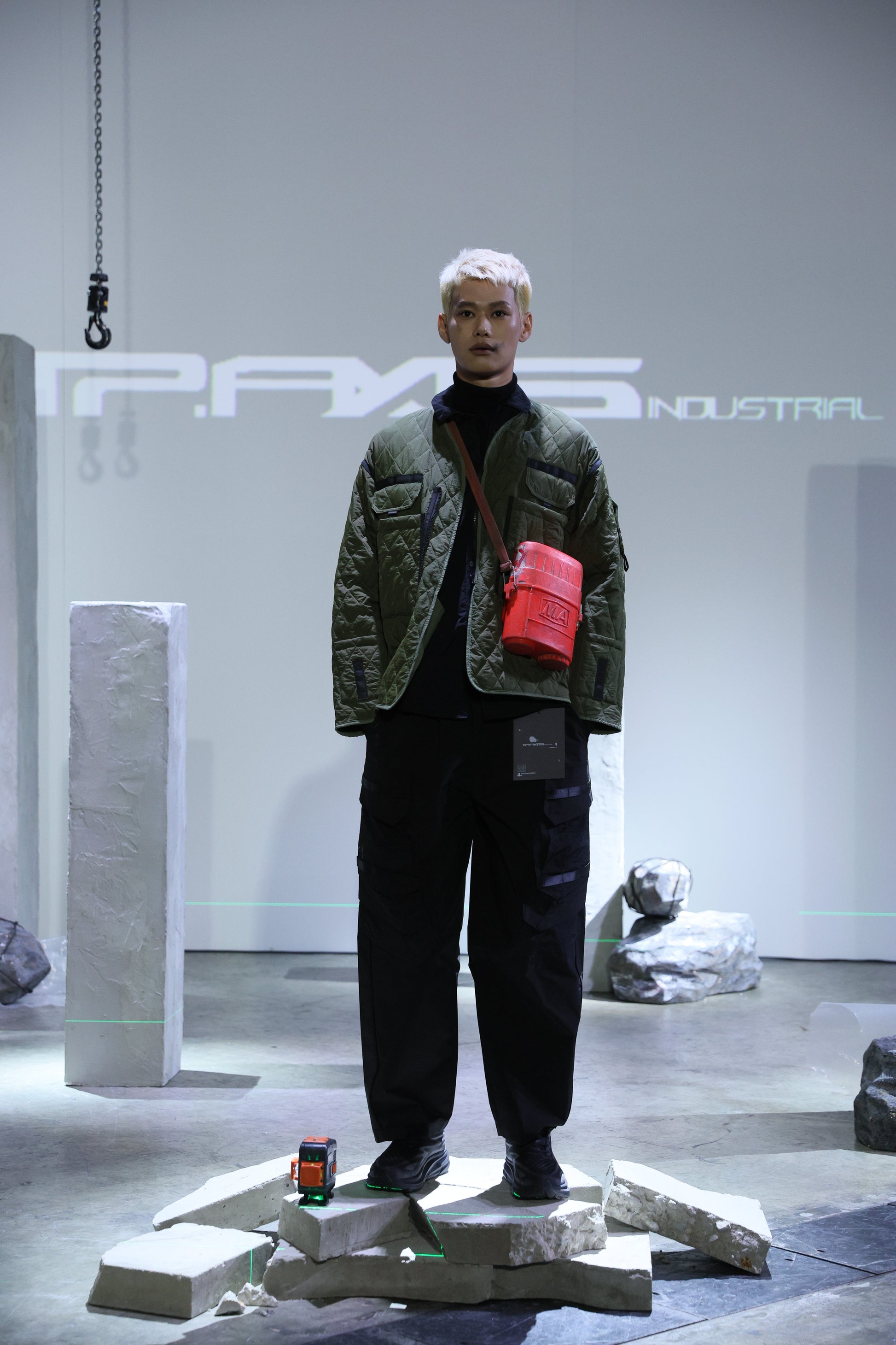 The designer defines his collections by Chapter. The brand constructs a virtual world and imagines the uniforms of different jobs in the future as inspiration to design futuristic, functional, and non-seasonal items. Continuing the previous chapter with future cleaners as the design prototype, this Chapter takes oil drilling workers as the inspiration, using 3D tailoring to simulate the muscle lines during work. The design of detachable accessories is used to provide a variety of ways of mix and match. Waterproof and water-resistant materials are used to provide the functionality of the collection and present Imagining future uniforms.