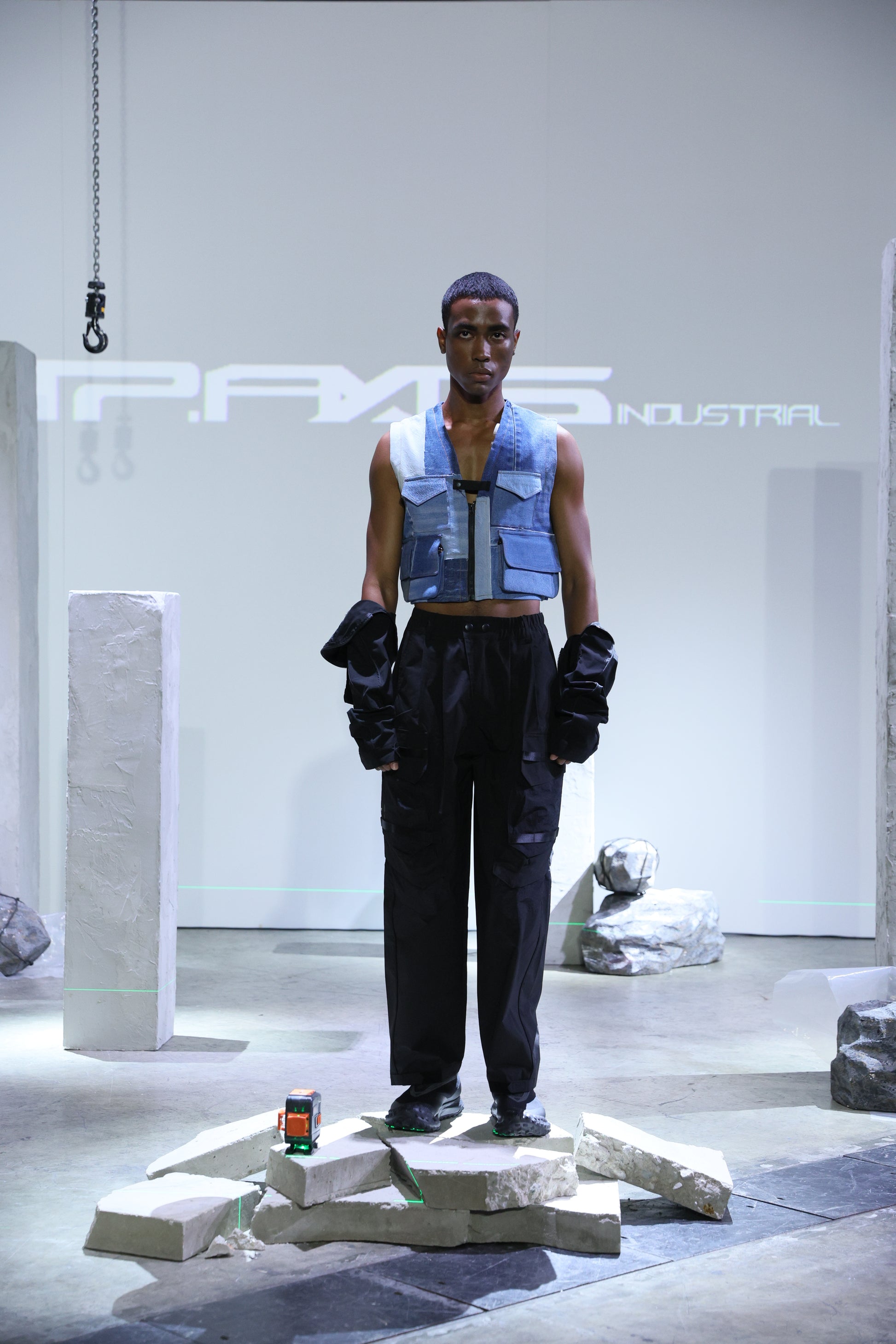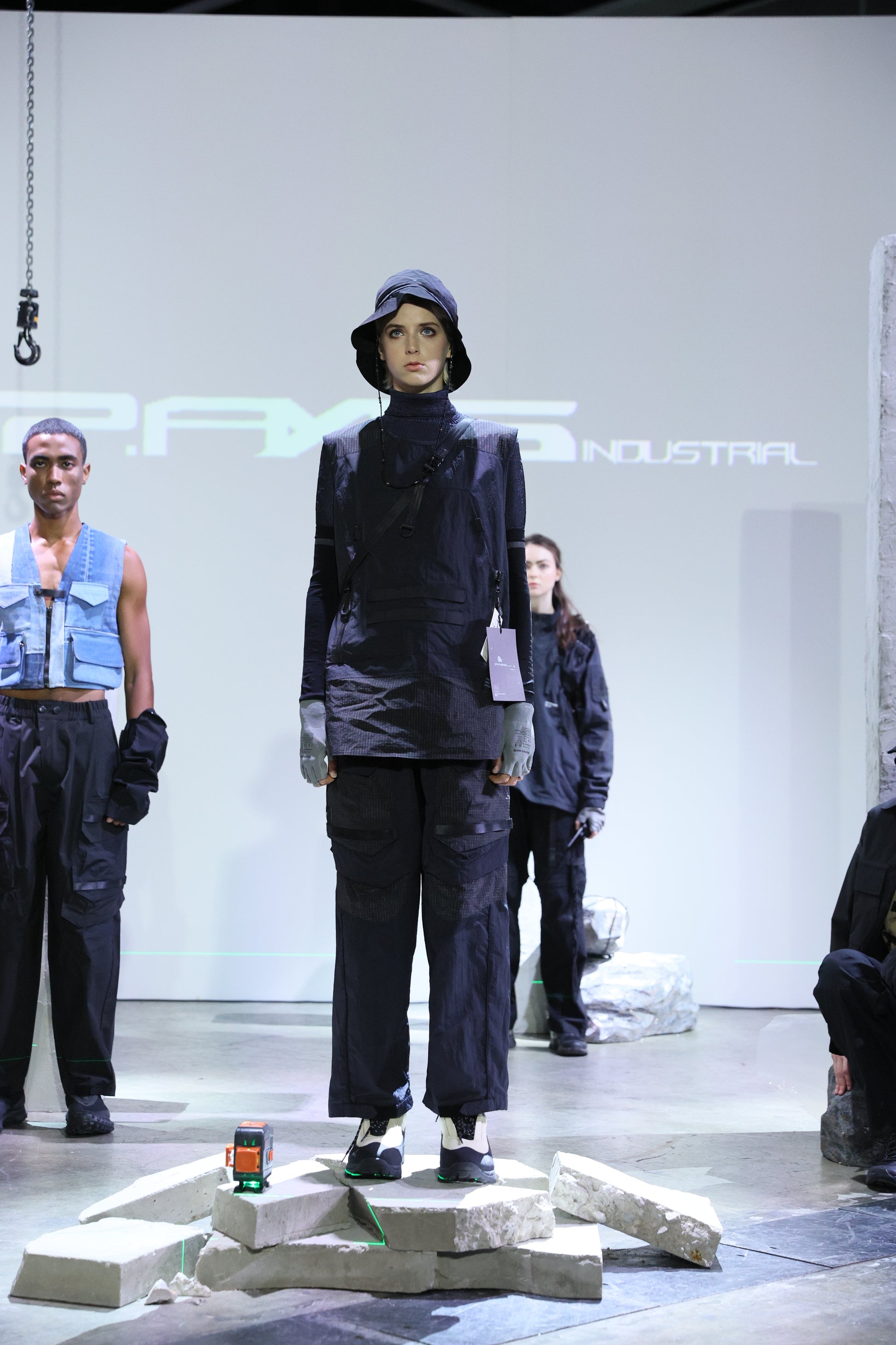 The designer defines his collections by Chapter. The brand constructs a virtual world and imagines the uniforms of different jobs in the future as inspiration to design futuristic, functional, and non-seasonal items. Continuing the previous chapter with future cleaners as the design prototype, this Chapter takes oil drilling workers as the inspiration, using 3D tailoring to simulate the muscle lines during work. The design of detachable accessories is used to provide a variety of ways of mix and match. Waterproof and water-resistant materials are used to provide the functionality of the collection and present Imagining future uniforms.