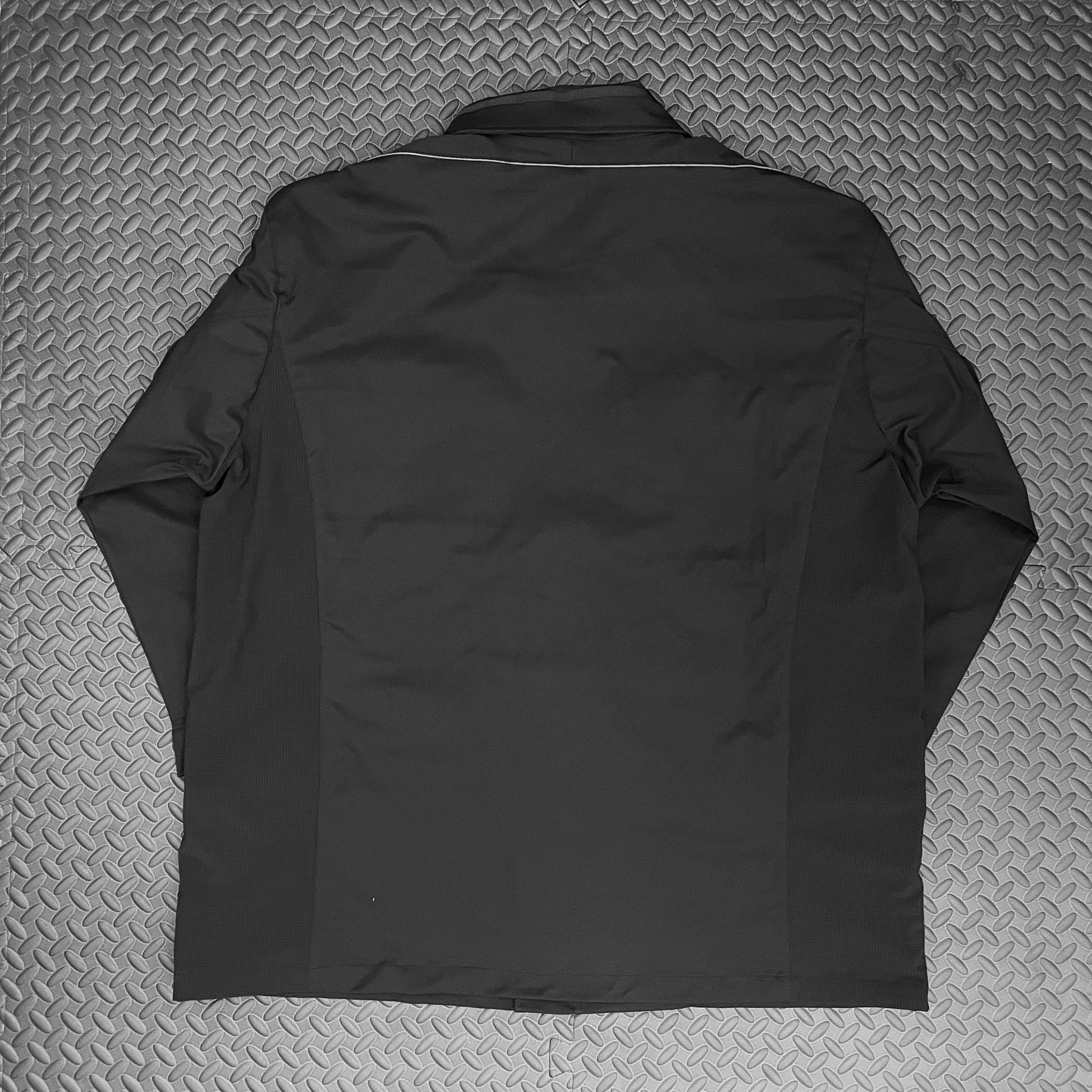 The cuff area is stitched with protective padding details. Additionally, the shoulder area features three-dimensional embroidered patterns, simulating a futuristic military style.