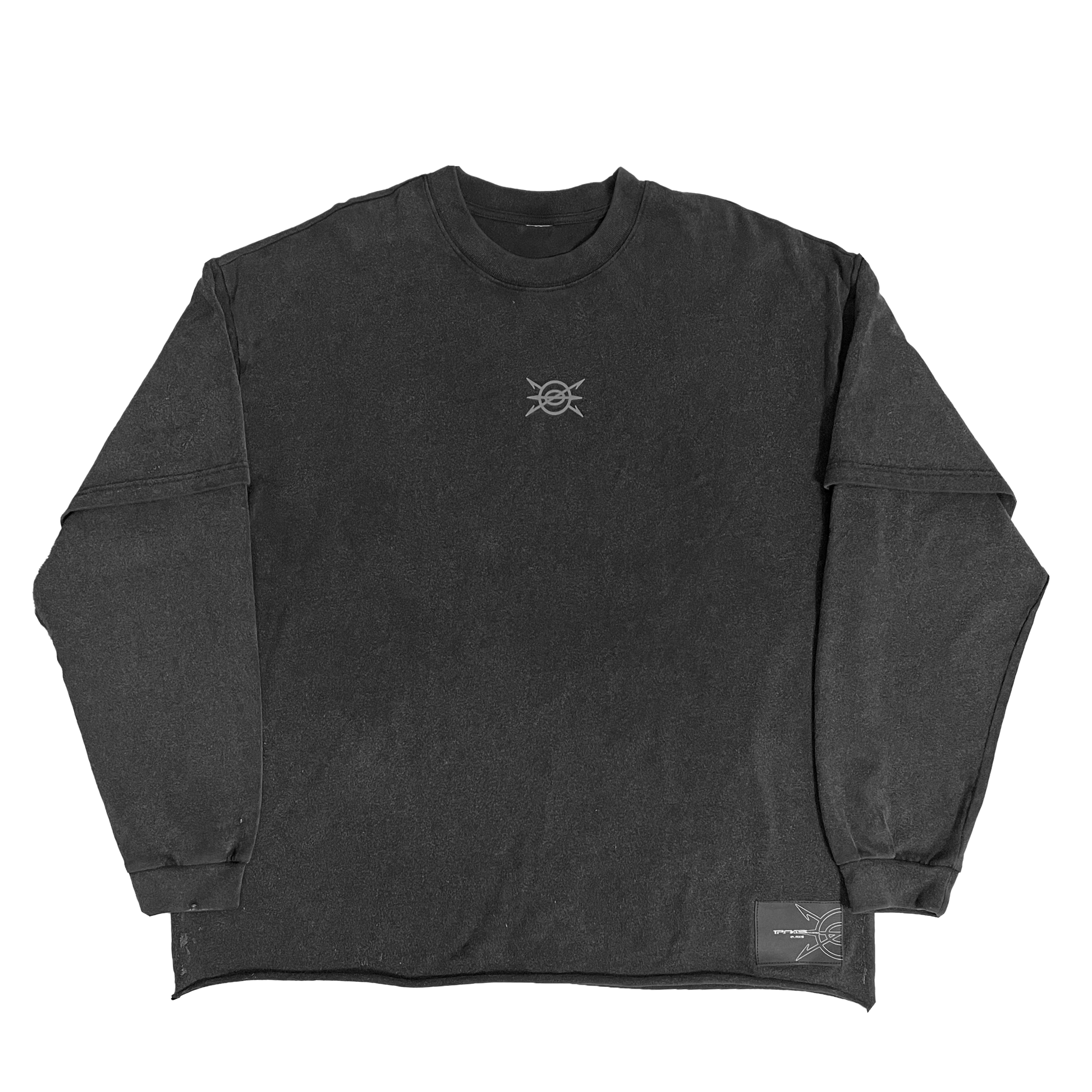 This long-sleeve tee features a washed, vintage-inspired finish paired with a minimalist front logo for a clean, understated look. The back showcases a large, intricate tech-flower graphic, blending organic forms with futuristic linework to create a bold visual statement. Crafted from soft, durable cotton, it offers both comfort and style, making it a standout piece for everyday wear or layered street outfits.